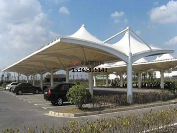 膜結(jié)構(gòu)車棚膜結(jié)構(gòu)所用的膜材料為具有、阻燃、耐久、自潔等特性的復合材料,一般由基布和涂層二部分組成。基布主要采用聚脂纖維或玻璃纖維絲編織而成,有平織和絞等多種編織方法,不同的膜結(jié)構(gòu)車蓬編織方法影響著膜材料的經(jīng)緯向力學性能指標,膜的抗拉強度和抗撕裂強度等;涂層材料主要有聚四氟乙烯和聚氯乙烯,在一定程度上提高了膜材料各項強度指標,為提高膜材料的耐久、自潔等特性,表面往往有一層氟涂層或硅涂層,膜材料的耐火、耐久及防水、自潔等性能,決定著膜材料的物理特性。