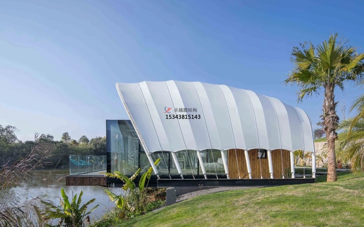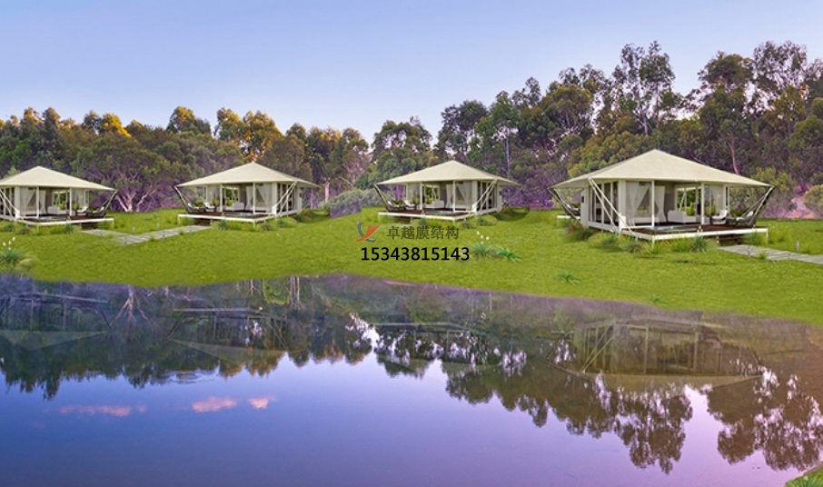 膜結(jié)構(gòu)帳篷酒店膜材是一種無毒的高分子材料。它具有無味的特點(diǎn),安裝后沒有一絲味道。另外,它擁有抗紫外線和反射光線極強(qiáng)的特點(diǎn),而且其抗撕裂的性能強(qiáng),還有B1/M2級(jí)別的阻燃性能,并且使用壽命極強(qiáng),一般壽命都在20年以上。