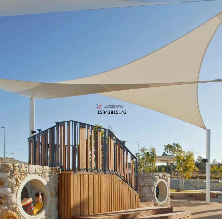 膜材料具有良好的透光性,可以在保證遮陽的同時,讓自然光線柔和地灑入室內(nèi),為孩子們提供充足的日照,有利于他們的視力保護和身心健康。同時,膜結(jié)構(gòu)的設(shè)計通常結(jié)合高效的通風系統(tǒng),確保室內(nèi)空氣流通,即使在炎熱的夏季也能保持室內(nèi)涼爽,為孩子們創(chuàng)造一個舒適的學習環(huán)境。
