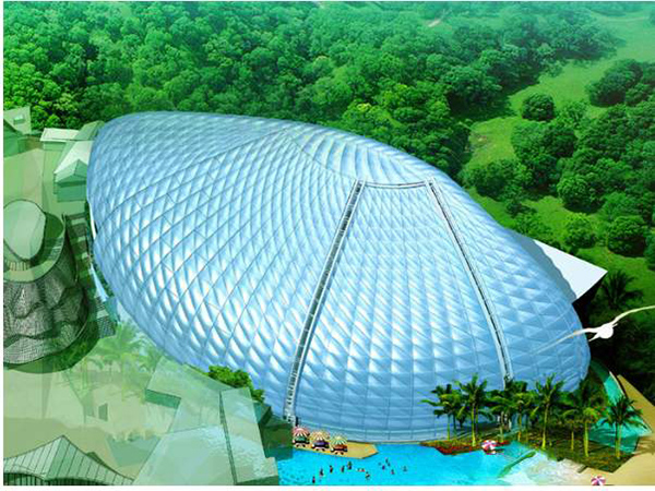 輕質(zhì)和高透光性:ETFE膜結(jié)構(gòu)非常輕巧,比玻璃屋面更輕,減輕了支撐結(jié)構(gòu)的負(fù)荷。它具有出色的透光性,能夠讓自然光線透過膜表面進(jìn)入室內(nèi),創(chuàng)造出明亮、舒適的空間。