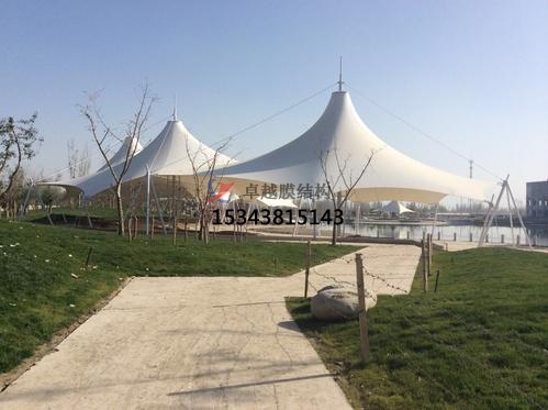 張拉膜景觀是一種建筑與結(jié)構(gòu)完美結(jié)合的結(jié)構(gòu)體系;它是用高強(qiáng)度柔性薄膜材料與支撐體系相結(jié)合形成具有一定剛度的穩(wěn)定曲面,能承受一定外荷載的空間結(jié)構(gòu)形式;這種結(jié)構(gòu)形式特別適用于大型體育場館、人口廊道、小品、公眾休閑娛樂廣場、展覽會場、購物中心等領(lǐng)域。