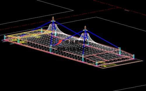 本工程膜材采用白色高端國(guó)產(chǎn)星益達(dá)PVDF高自潔環(huán)保建筑膜材,鋼結(jié)構(gòu)采用更好的標(biāo)準(zhǔn)Q235B鋼材,表面采用酚醛底漆處理,面漆采用白色鋼結(jié)構(gòu)專用快干磁漆。