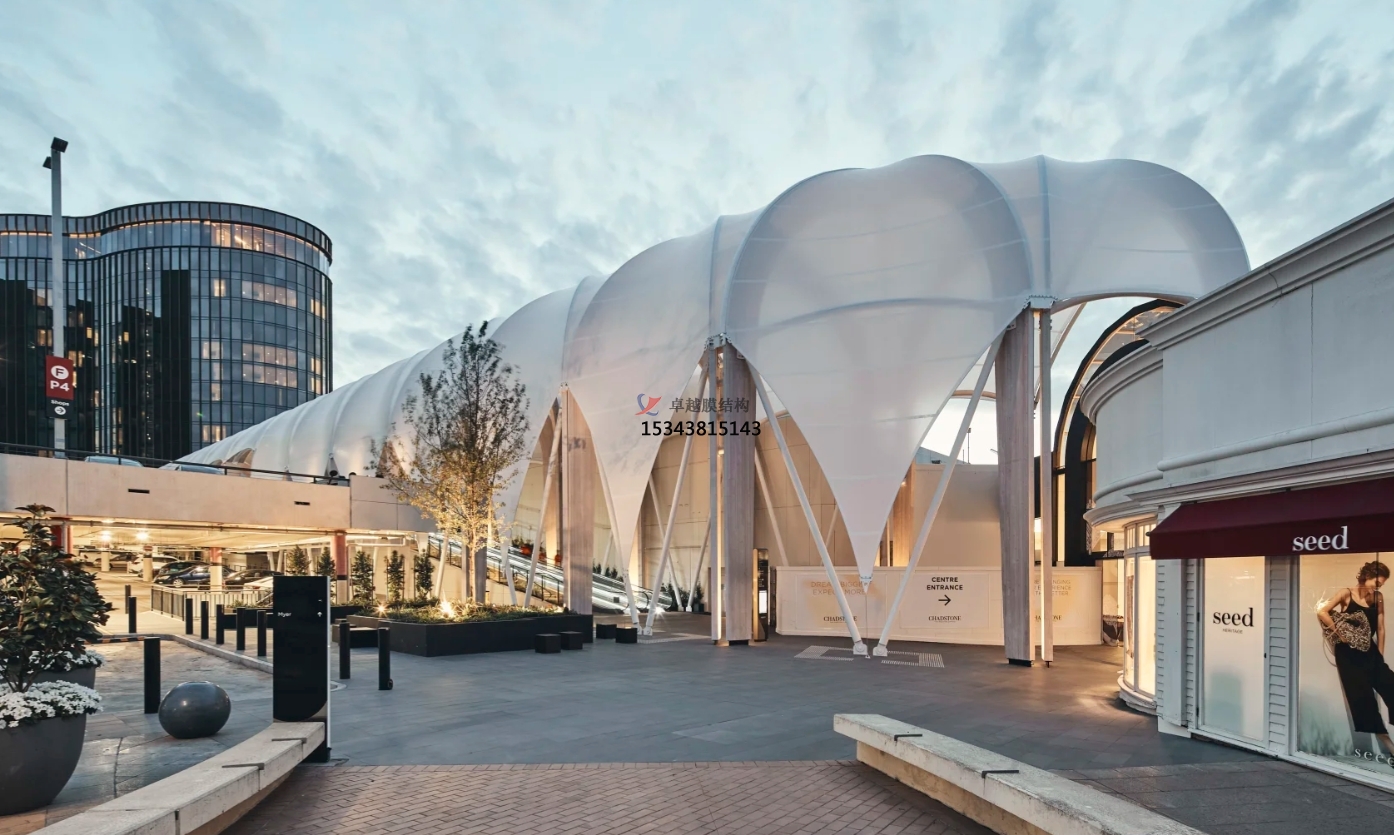 商業(yè)購物中心的主要特點(diǎn)是因商業(yè)店鋪的集中而形成了室內(nèi)室外購物、休閑、餐飲等功能空間,步行街及中央活動(dòng)區(qū)域是人們行走、休息、交流的開放空間,基于商業(yè)街特色,就決定了所有設(shè)計(jì)的核心就是讓空間更具人性化。屋頂作為建筑附加設(shè)施,不僅要求遮陽避雨的實(shí)用功能,也應(yīng)該是錦上添花的設(shè)施。目前國(guó)內(nèi)外膜結(jié)構(gòu)應(yīng)用于商業(yè)綜合體的工程案例越來越多,膜結(jié)構(gòu)建造的屋頂擁有很多傳統(tǒng)屋頂所不具備的優(yōu)勢(shì)特點(diǎn)。