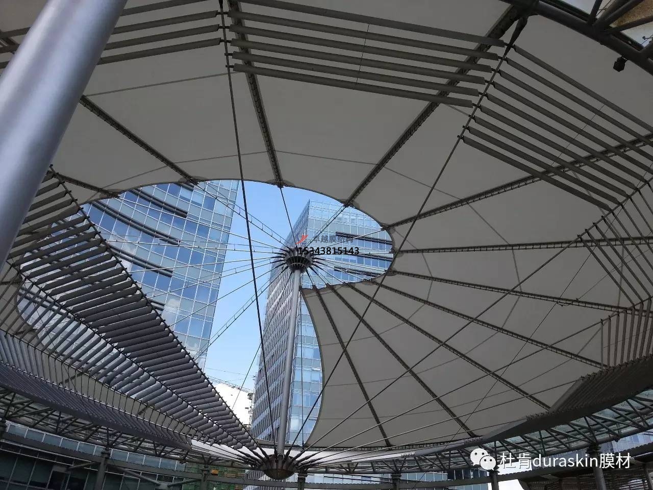 膜結(jié)構(gòu)遮陽棚工程頂棚面重量僅為常規(guī)遮陽棚的1/30,這就降低了基礎(chǔ)的造價。同時膜結(jié)構(gòu)工程奇特的造型和夜景效果有明顯的“建筑可識性”和商業(yè)效應(yīng),其價格效益比更高。
