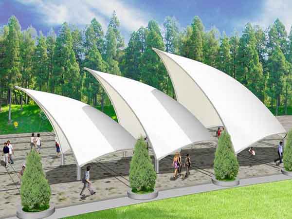 5、膜結構以造型學、色彩學為依托,可結合當地自然條件及民族風情,設計出屬于自己獨特結構,使得成為一道亮麗的風景線。并且經濟性較實用、采用膜結構會有很大的優(yōu)勢,其成本只相當于傳統(tǒng)棚的二分之一左右,而且膜結構能夠拆卸,易于搬遷。表面涂有聚四氟乙烯涂層,不易附著灰塵,依靠雨水沖洗就能保持潔凈。