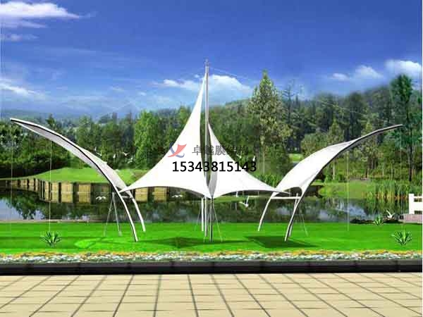 景觀膜結(jié)構(gòu)不僅能夠根據(jù)園林景觀的實(shí)際情況設(shè)計(jì)出能夠跟自然景觀和諧一體的造型,重要的是還能提供豐富多彩的用途,讓人賞心悅目,景觀膜結(jié)構(gòu)充分展示了結(jié)構(gòu)構(gòu)件清晰受力的藝術(shù)之美,配合周圍景色創(chuàng)造出一種現(xiàn)代與自然結(jié)合的感覺(jué);