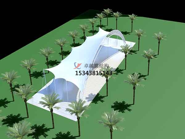 6、膜結構景觀具有結構牢固、外觀新穎,經濟適用,適用壽命長,節(jié)能環(huán)保等優(yōu)點。深受廣大用戶的一致好評,卓越所有工程全部都是通過專業(yè)3D3S膜結構軟件計算通過,結構安全,質量可靠。