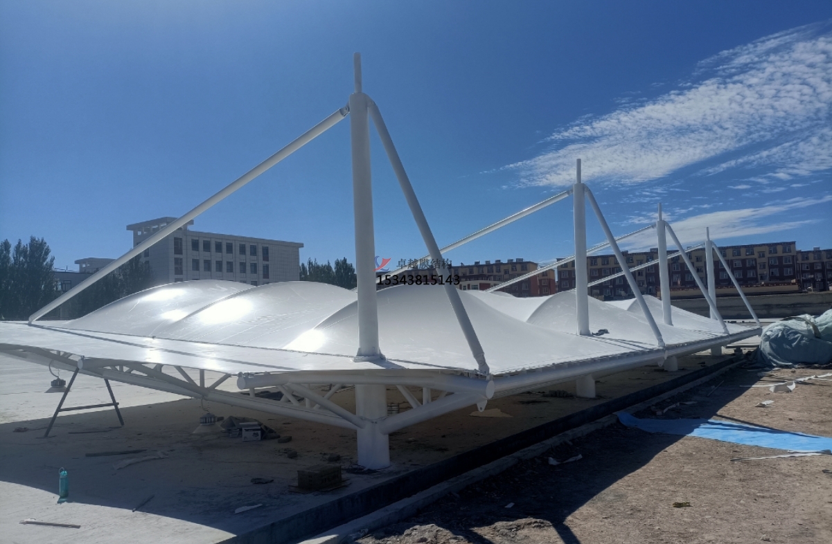 膜結(jié)構材料具有較好的耐久性和自潔性。一般情況下,只需要定期進行簡單的清潔和檢查,不需要像傳統(tǒng)建筑結(jié)構那樣頻繁地進行大規(guī)模的維修和保養(yǎng)。選擇具有自潔性的膜材,表面的自潔涂層可以在雨水的沖刷下自動清潔灰塵和污漬,大大降低了維護成本。
