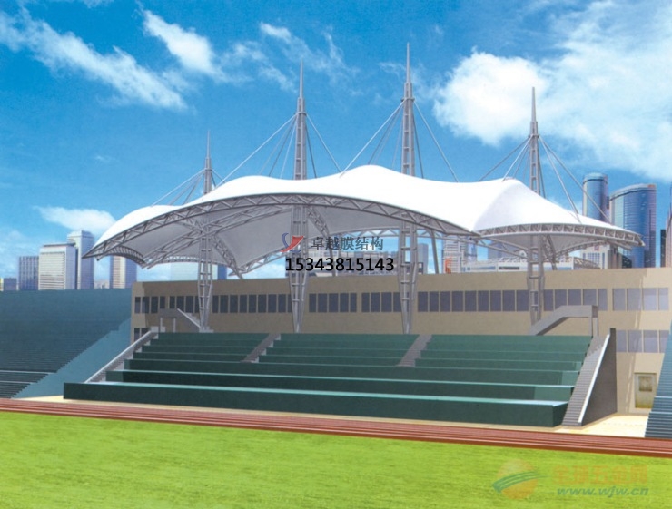 膜結(jié)構(gòu)的結(jié)構(gòu)形式:是由多種高強(qiáng)薄膜材料PVC或Teflon及加強(qiáng)構(gòu)件鋼架、鋼柱或鋼索通過一定方式使其內(nèi)部產(chǎn)生一定的預(yù)張應(yīng)力以形成某種空間形狀,作為覆蓋結(jié)構(gòu),并能承受一定的外荷載作用的一種空間結(jié)構(gòu)形式。
