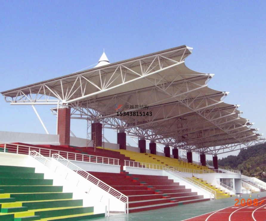 膜結(jié)構(gòu)看臺(tái)是一種全新的建筑結(jié)構(gòu)形式,它集建筑學(xué)、結(jié)構(gòu)力學(xué)、精細(xì)化工與材料科學(xué)、計(jì)算機(jī)技術(shù)等為一體,具有很高技術(shù)含量。其曲面可以隨著建筑師的設(shè)計(jì)需要任意變化,結(jié)合整體環(huán)境,建造出標(biāo)志性的形象工程。
