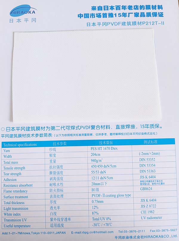 日本平岡建筑膜材T系列: