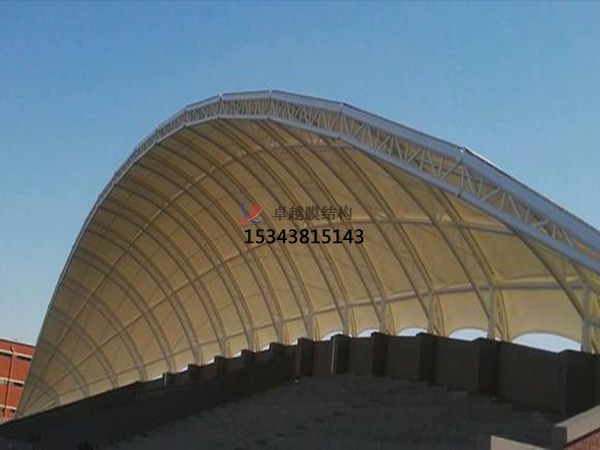 如遮陽(yáng)篷的剪裁設(shè)計(jì)清楚地表現(xiàn)出漏斗狀傘頂?shù)脑煨?,其圖案還具有典型的穆斯林建筑風(fēng)格,有很強(qiáng)的裝飾效果。位于吉隆坡的馬來(lái)西亞更好的體育中心游泳館膜頂剪裁設(shè)計(jì)更具裝飾性。拼縫整體上是流暢的曲線,其間點(diǎn)綴著幾個(gè)巨大的花形圖案,而花心處恰恰是膜面的支點(diǎn)。花朵圖案的拼縫設(shè)i一十既明確表達(dá)了其受力關(guān)系,也有助動(dòng)了解膜面的整體形態(tài)。頂棚的整體效果猶如流動(dòng)的水面上浮著幾朵花瓣,跳動(dòng)的圖案給室內(nèi)帶來(lái)歡快的氣氛。