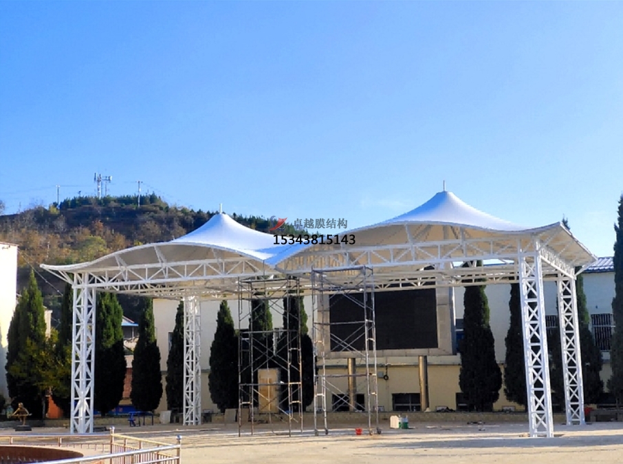 為了抵擋風雪,膜面的外形應使排水通暢使捷,避免在其上形成水兜或雪的堆積。在施加預應力前的安裝成形階段,張拉膜結構對這些荷載十分敏感。為了能將雨水排除,膜材和接縫須密封防水,膜邊緣也進行特殊的細部設計,以防止雨水進入室內(nèi)。