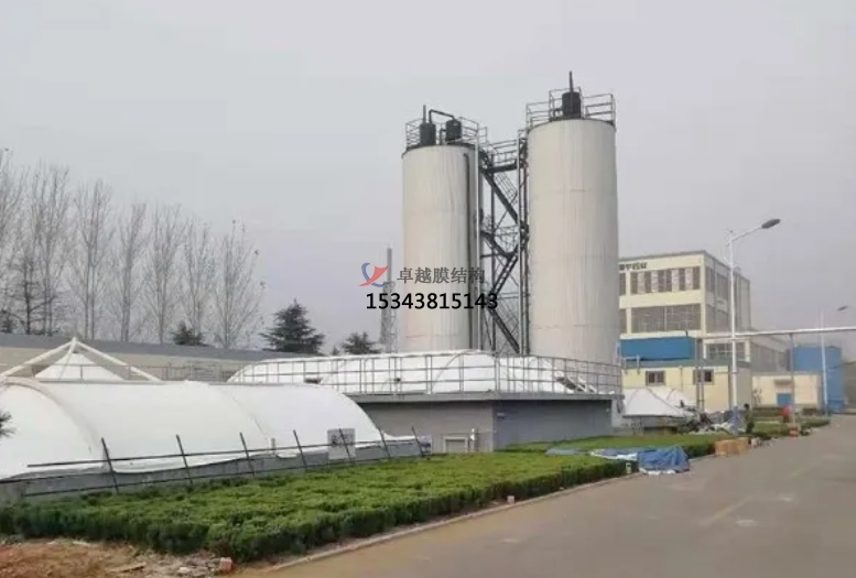 污水池反吊膜采用的膜材抗腐蝕性能高,抗撕扯抗氧化能力好,不僅可以克服外界的不良環(huán)境(如風載,雪載)等,而且自身采用優(yōu)質PVDF涂層,經過uv光固化處理,具有防霉抗菌作用。廢氣收集效率高;污水池加蓋反吊膜結構之所以受歡迎,是因為其廢氣收集率高,做到對環(huán)境的零污染。
