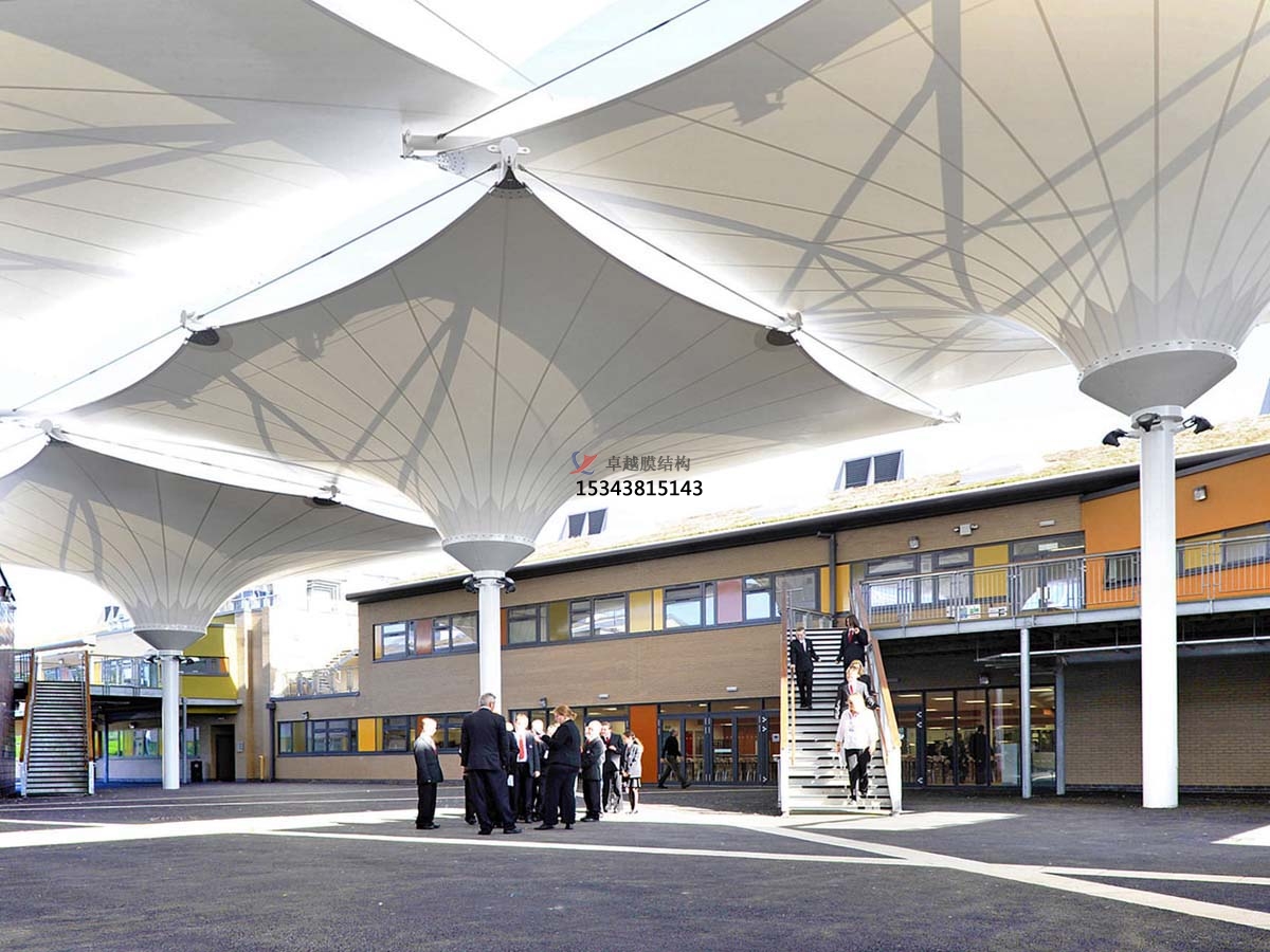 ①要在支承結(jié)構(gòu)的構(gòu)件表面的油漆干后才開始安裝膜面,以防止膜面因油漆而粘結(jié)在支承構(gòu)件上、膜面受到污染,甚至因粘結(jié)造成局部應(yīng)力集中導(dǎo)致膜面撕裂;