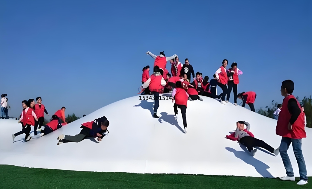 蹦蹦云的設計高度靈活,可根據(jù)場地環(huán)境定制形態(tài)與規(guī)模。無論是平坦空地還是起伏地形,均可通過設置沙坑、坡度或洞穴,塑造自然野趣的游樂場景。其純白外觀與云朵造型,既能融入景區(qū)生態(tài)景觀,也可作為商業(yè)地產(chǎn)的網(wǎng)紅打卡點。從親子樂園到度假村,從生態(tài)農(nóng)莊到特色小鎮(zhèn),蹦蹦云以 “可蹦、可滑、可躺” 的多維體驗,滿足全年齡段游客的互動需求。