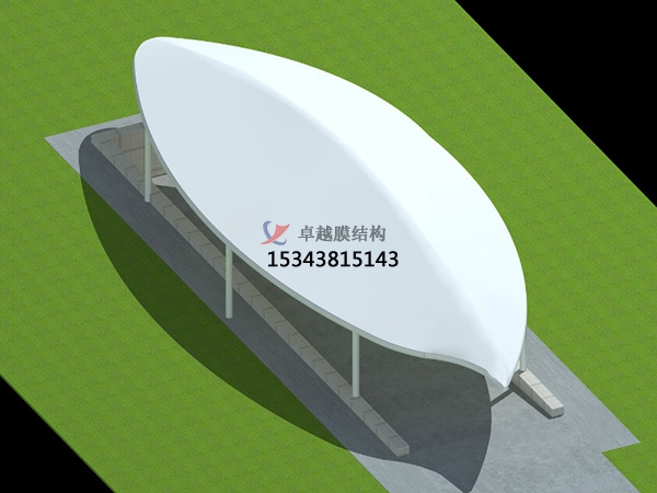 二點,膜結(jié)構(gòu)建筑頂部封板選用茶色(顏色可選擇)陽光板封頂,與車棚整體骨架用壓條鉚接固定,耐酸堿腐蝕,有滿意強度對棚內(nèi)車輛起到保護作用;