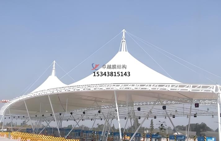 膜結(jié)構(gòu)出入口類型:地下車庫膜結(jié)構(gòu)出入口,大門膜結(jié)構(gòu)出入口,停車場出入口膜結(jié)構(gòu)收費(fèi)亭。地下車庫膜結(jié)構(gòu)出入口的功能是替代傳統(tǒng)雨棚,遮陽擋雨,提升車庫實(shí)用性。優(yōu)點(diǎn)則是可拆裝重復(fù)使用(綠色環(huán)保)、自潔性強(qiáng)(雨水沖洗即可清潔)、抗老化(壽命 15 年以上),主要應(yīng)用場景為住宅、商場、交通樞紐的地下車庫。大門膜結(jié)構(gòu)出入口的功能是兼顧遮陽防雨與景觀裝飾,提升建筑形象。優(yōu)點(diǎn)是造型新穎(如流線型、雕塑感設(shè)計(jì))、透光性好(減少照明能耗)、自重輕(抗震性強(qiáng))。應(yīng)用場景通常是小區(qū)、景區(qū)、學(xué)校、商業(yè)綜合體的主入口。停車場出入口膜結(jié)構(gòu)收費(fèi)亭的功能是作為收費(fèi)管理設(shè)施,兼具功能性與美觀性,優(yōu)點(diǎn)則是施工快捷、大跨度無柱設(shè)計(jì)、抗風(fēng)抗雪能力強(qiáng)。應(yīng)用場景通常是公路收費(fèi)站、景區(qū)停車場、物流園區(qū)。