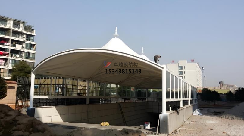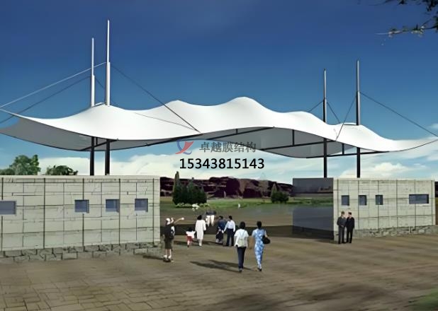 膜結(jié)構(gòu)出入口是一種以高強(qiáng)度膜材料與支撐結(jié)構(gòu)(鋼索、鋼架等)結(jié)合的建筑形式,具有輕盈、美觀、耐用等特點(diǎn),廣泛應(yīng)用于各種場所的建筑形式,主要用于提供遮陽、遮雨的功能,同時(shí)具有較高的觀賞性和藝術(shù)感。