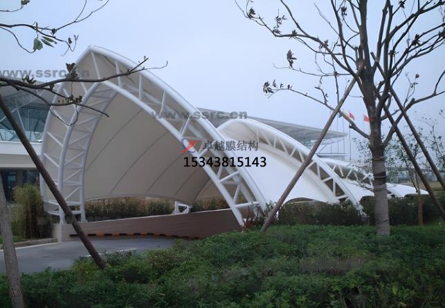 膜結(jié)構(gòu)出入口優(yōu)勢總結(jié):膜結(jié)構(gòu)的外觀和造型可以創(chuàng)造出各種獨(dú)特的造型,如弧形、波浪形、拱形等,使出入口具有較高的觀賞性和藝術(shù)感。膜材料通常具有較好的透光性,可以增加出入口的采光,使內(nèi)部空間更加明亮。膜結(jié)構(gòu)具備足夠的穩(wěn)定性和耐久性,以承受風(fēng)、雨、雪等自然環(huán)境的影響。由于出入口需要保證人員和車輛的安全通行,所以膜結(jié)構(gòu)具備防滑、防碰撞等安全設(shè)計(jì)??紤]到人們的使用需求,膜結(jié)構(gòu)通常具有人性化設(shè)計(jì),出入口的寬度、高度、坡度等符合人體工程學(xué)原理,方便人們進(jìn)出。通過適當(dāng)?shù)恼彰髟O(shè)計(jì),可以使膜結(jié)構(gòu)出入口在夜晚呈現(xiàn)出獨(dú)特的視覺效果,增加夜間的辨識(shí)度和美感。膜結(jié)構(gòu)出入口的設(shè)計(jì)多樣化,可以與周邊建筑和環(huán)境相協(xié)調(diào),融入整體景觀。膜結(jié)構(gòu)出入口的設(shè)計(jì)還可以結(jié)合具體的文化元素和現(xiàn)代感,如“城市之窗”造型、折紙?jiān)煨?、陶器造型等,使出入口不僅實(shí)用,還能成為城市景觀的一部分。