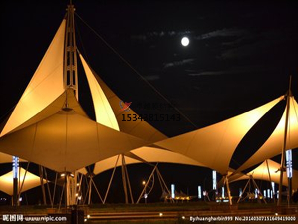 3.因?yàn)槟げ牡淖陨硖匦?,在燈火的照射下能?gòu)成艷麗繽紛的美景。景象膜結(jié)構(gòu)它不僅能夠供給遮陽擋雨的空間,更因?yàn)檫@種輕盈優(yōu)美的造型能給人們帶來時(shí)髦、輕松的休閑感受。