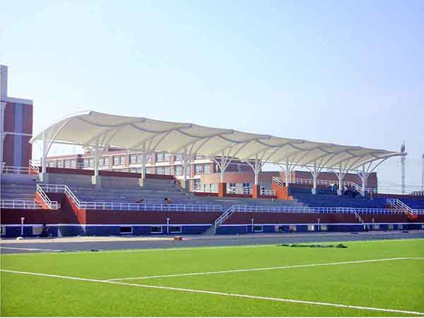 張拉膜看臺主要用于各類地方體育場主席臺雨棚,各類學(xué)校體育場看臺雨棚遮蓋,我公司是國內(nèi)較早從事大懸挑張拉膜結(jié)構(gòu)看臺設(shè)計施工的專業(yè)廠家,下面介紹一下我們在南昌市周邊縣市完工的一些張拉膜看臺設(shè)計施工案例,我公司先后在南昌周邊承接了江西水利職業(yè)學(xué)院張拉膜看臺雨棚、江西衛(wèi)生職業(yè)學(xué)院張拉膜看臺罩棚、江西外語外貿(mào)職業(yè)學(xué)院張拉膜看臺遮陽棚等設(shè)計施工項目,簡介如下: