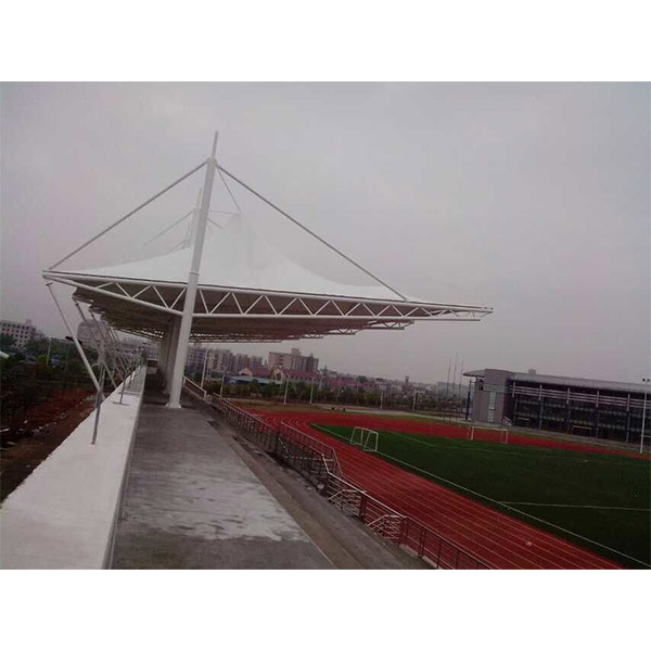 選用膜材拉力:5900N-6900N 鋼構(gòu)選用材料: 鞍鋼生產(chǎn)的Q235B高頻焊管及Q345無縫鋼管 工程施工周期:總工期29日歷天 索膜結(jié)構(gòu)形式:管桁架四邊張拉索膜結(jié)構(gòu)看臺 工程完工面積:膜材展開面積589㎡" />