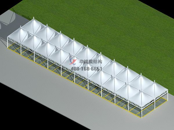 這是我司衡陽及華北地區(qū)完工的膜結(jié)構(gòu)停車棚工程案例,膜結(jié)構(gòu)停車棚具有外觀新穎,經(jīng)濟適用,適用壽命長,節(jié)能透光等優(yōu)點。深受廣大用戶的好評,我司所有工程全部通過專業(yè)膜結(jié)構(gòu)軟件計算通過,結(jié)構(gòu)安全,質(zhì)量可靠,歡迎來電訂購,聯(lián)系電話:0371-55068488,小編期待您的咨詢。