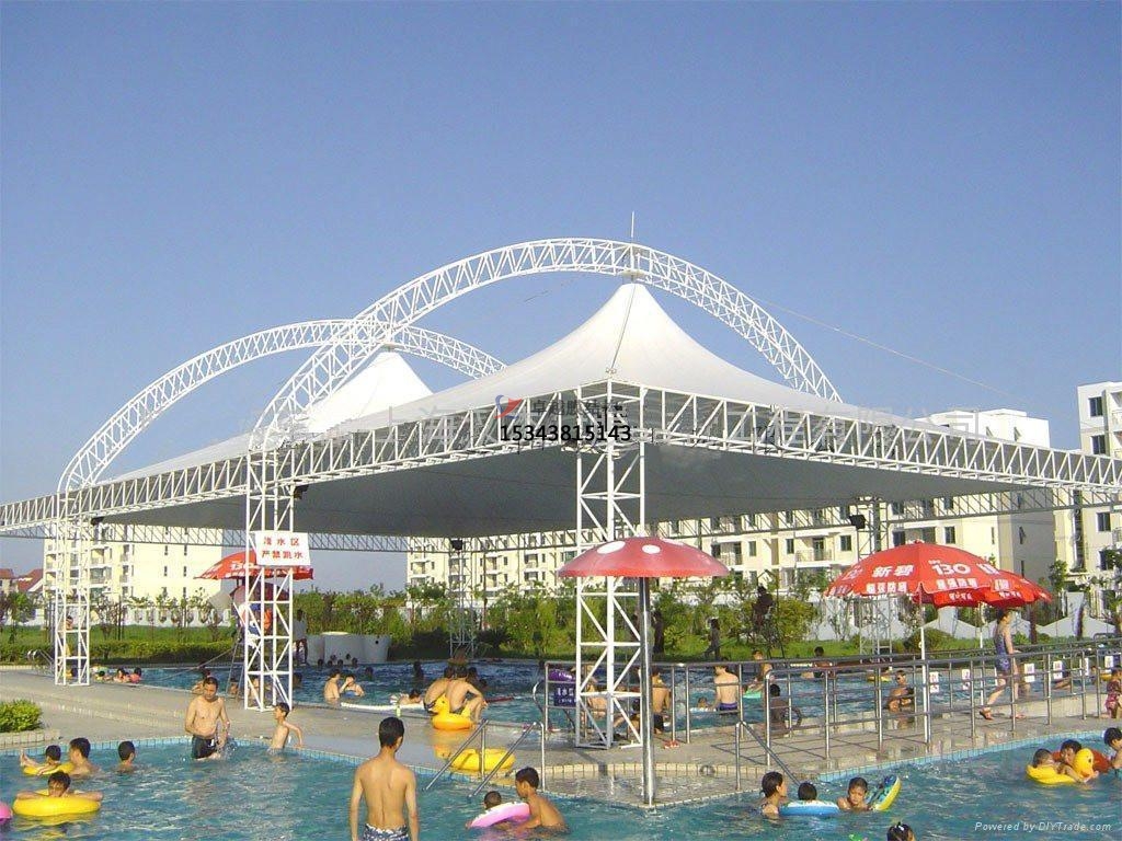 游泳館膜結(jié)構(gòu)是一種適用于大型游泳館建造的先進(jìn)技術(shù),通?;阡摻Y(jié)構(gòu)或光鋼結(jié)構(gòu)框架等穩(wěn)定型構(gòu)件,采用高強(qiáng)度、高韌性的PVDF膜或PTFE膜作來(lái)覆蓋整個(gè)館內(nèi)空間,并形成周邊固定結(jié)構(gòu)的耐候和保護(hù)部件所構(gòu)成的一種膜形結(jié)構(gòu)體系。