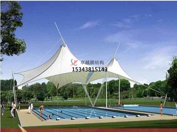 膜結(jié)構(gòu)的結(jié)構(gòu)形式:是由多種高強(qiáng)薄膜材料(PVC或Teflon)及加強(qiáng)構(gòu)件(鋼架、鋼柱或鋼索)通過一定方式使其內(nèi)部產(chǎn)生一定的預(yù)張應(yīng)力以形成某種空間形狀,作為覆蓋結(jié)構(gòu),并能承受一定的外荷載作用的一種空間結(jié)構(gòu)形式。