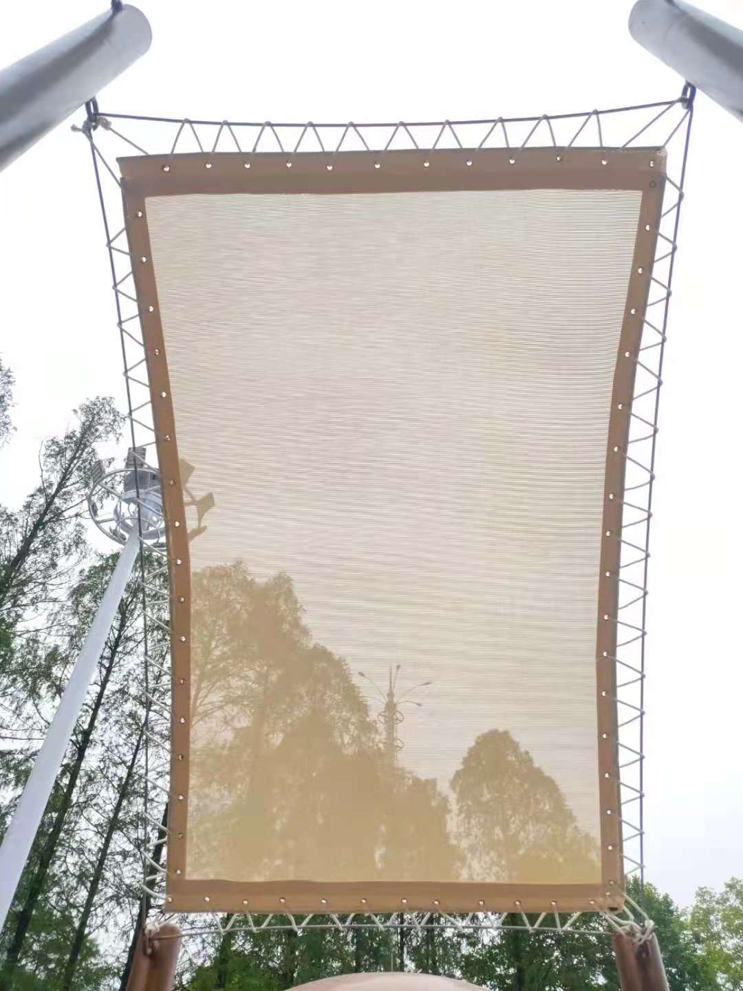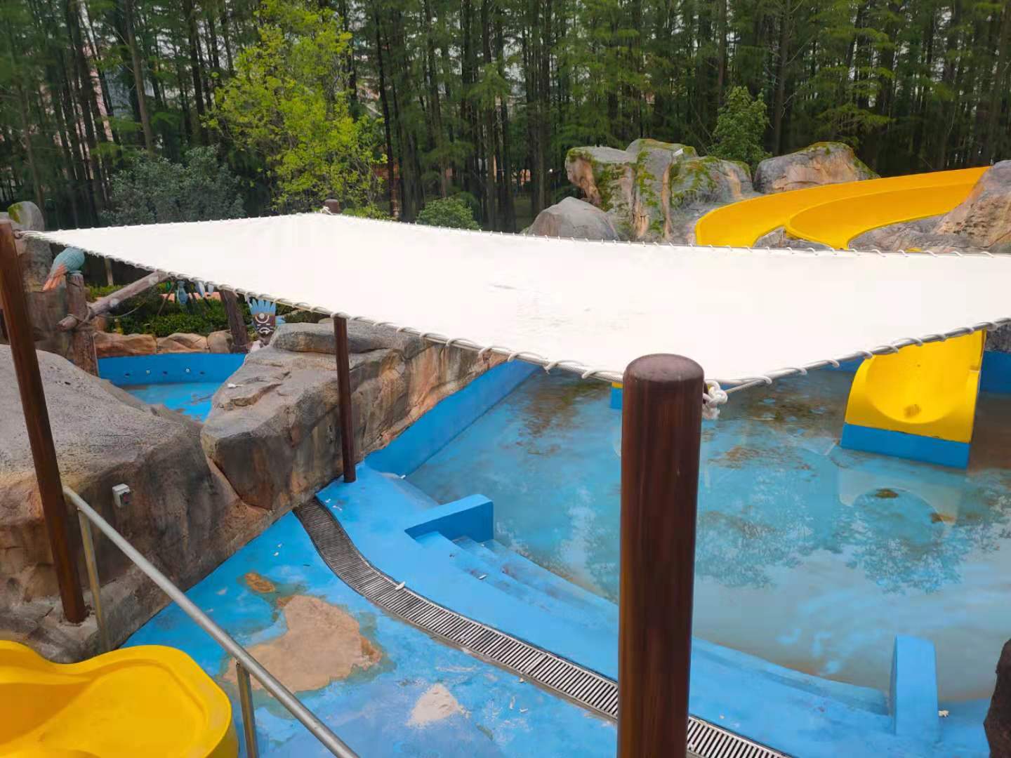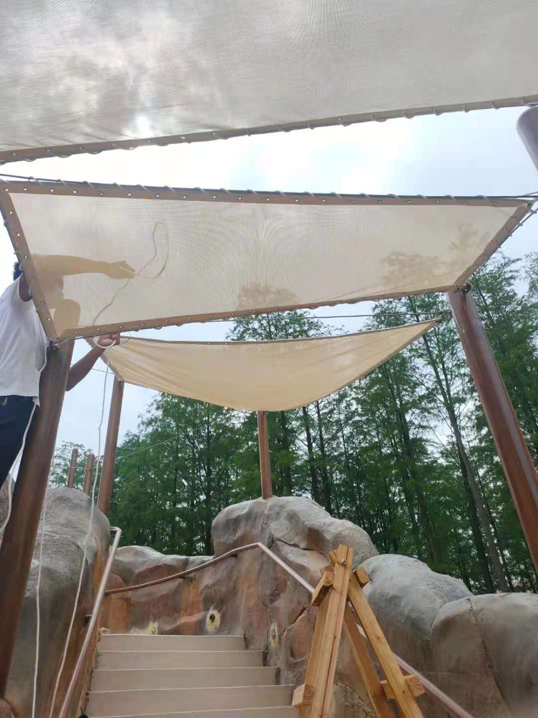 武漢瑪雅公園膜結構景觀,是我公司與游樂設備公司配套工程,材料遮陽效果好,質量輕,采用法國進口彩色法拉利網(wǎng)格膜材,空運到我廠深加工后,現(xiàn)場安裝完成的,完工時間2021年4月7日