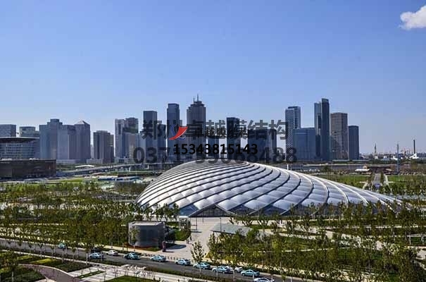 膜結(jié)構(gòu)是一種建筑與結(jié)構(gòu)完美結(jié)合的結(jié)構(gòu)體系。它是用高強(qiáng)度柔性薄膜材料與支撐體系相結(jié)合形成具有一定剛度的穩(wěn)定曲面,能承受一定外荷載的空間結(jié)構(gòu)形式。其造型自由輕巧、阻燃、制作簡(jiǎn)易、安裝快捷、節(jié)能、安全等優(yōu)點(diǎn),因而使它在世界各地受到廣泛應(yīng)用。這種結(jié)構(gòu)形式特別適用于大型體育場(chǎng)館、入口廊道、小品、公眾休閑娛樂(lè)廣場(chǎng)、展覽會(huì)場(chǎng)、購(gòu)物中心等領(lǐng)域。