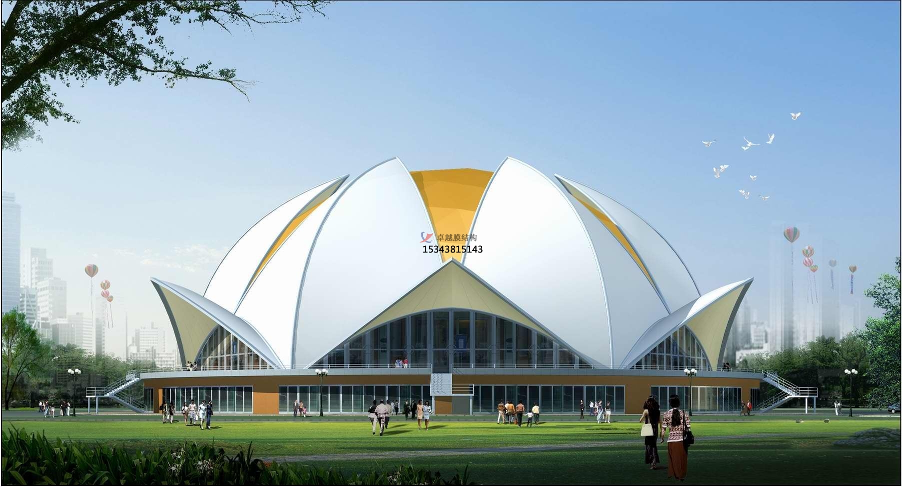 自潔性能:采用的膜材表面均附加有自潔層或經(jīng)過(guò)特殊表面自潔處理,具有很好的自潔性能,雨水會(huì)在其表面聚成水珠流下,使膜材表面得到自然清洗。