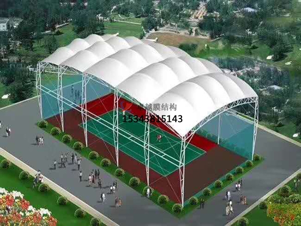 2、那曲廣播電視大學網(wǎng)球場膜結(jié)構(gòu)罩棚施工案例