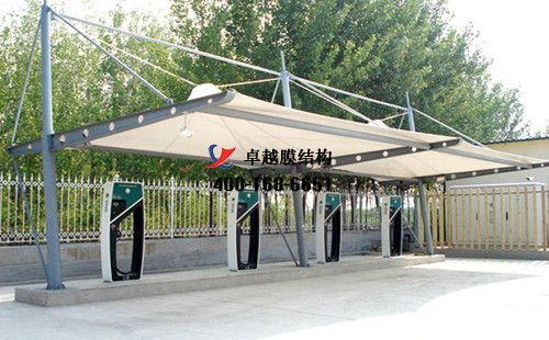 膜結(jié)構(gòu)充電站樁車棚設(shè)計(jì)、施工項(xiàng)目,效果及簡(jiǎn)介如下: