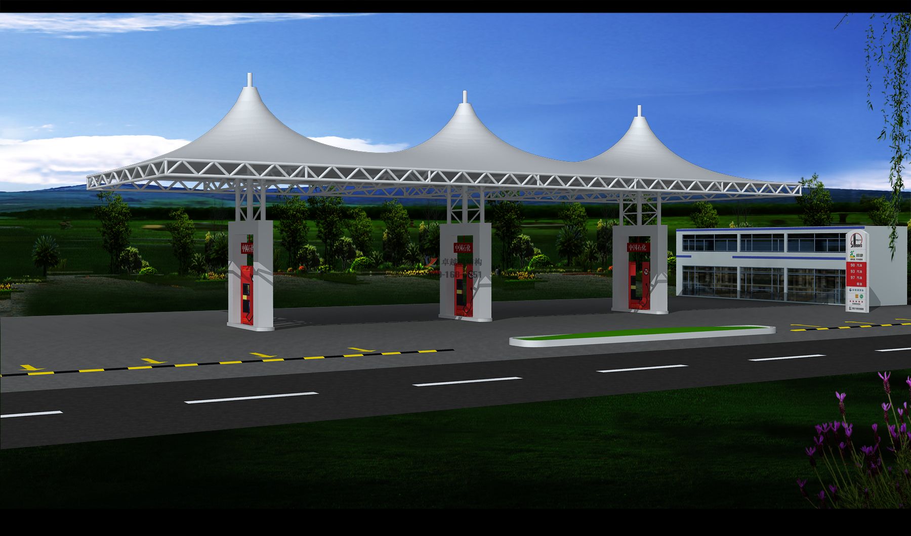 以上就是我公司在朔州及周邊區(qū)域完工的膜結(jié)構(gòu)加油站頂棚項目,卓越膜結(jié)構(gòu)擁有膜結(jié)構(gòu)設(shè)計一級資質(zhì)、膜結(jié)構(gòu)制作二級資質(zhì),膜結(jié)構(gòu)安裝二級資質(zhì),鋼結(jié)構(gòu)專業(yè)承包三級資質(zhì)。立足鄭州服務(wù)全國,完工案例上千項,遍布全國各地。專業(yè)設(shè)計團隊,一級結(jié)構(gòu)工程師領(lǐng)銜,所有項目均經(jīng)專業(yè)結(jié)構(gòu)計算軟件計算滿足,保證質(zhì)量,保證結(jié)構(gòu)安全,歡迎來電咨詢采購,聯(lián)系電話:17698102388,期待為您服務(wù)。