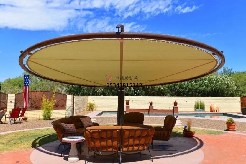 景觀遮陽棚、景觀連廊及景觀標(biāo)識建筑等。這就不得不提膜結(jié)構(gòu),作為新型的建筑材料和設(shè)計(jì)概念的結(jié)合體,膜結(jié)構(gòu)已占據(jù)了公共場所的建設(shè)中的一席之地。