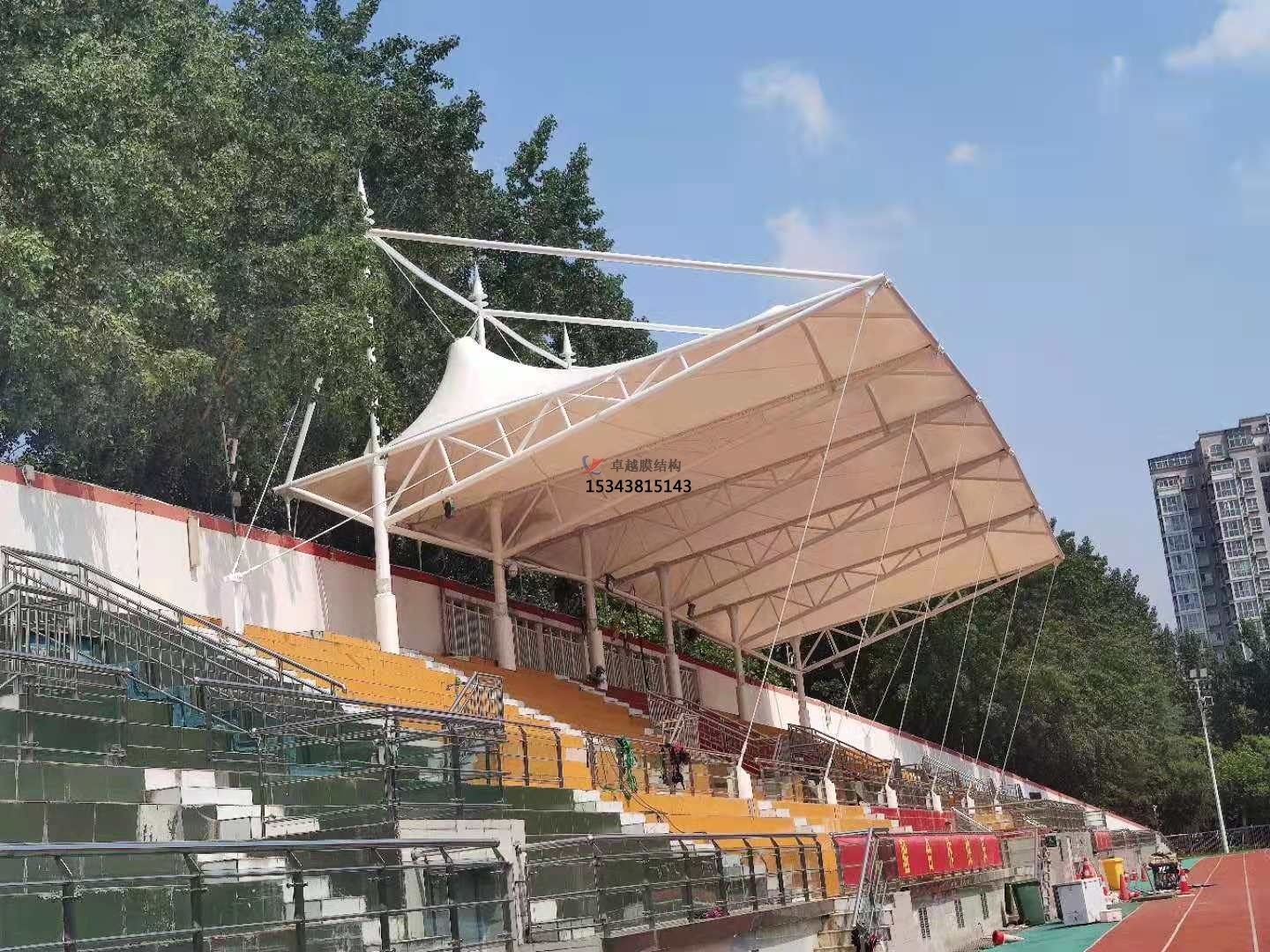 膜結(jié)構(gòu)體育看臺(tái)特點(diǎn):經(jīng)濟(jì)實(shí)用美觀,鋼材+鋼索+高強(qiáng)度膜材;大跨度無遮擋視覺空間覆蓋;外觀新穎優(yōu)美而精致,設(shè)計(jì)無限,時(shí)尚環(huán)保理念;遮陽避雨,抗震阻燃,防紫外線;結(jié)構(gòu)堅(jiān)固,高強(qiáng)可靠的抗負(fù)荷載能力;完美的細(xì)部處理,優(yōu)質(zhì)齊全的配件附件;高效的防腐,防塵,自潔功能;服務(wù)完善周全,現(xiàn)場施工過程簡便,快捷。