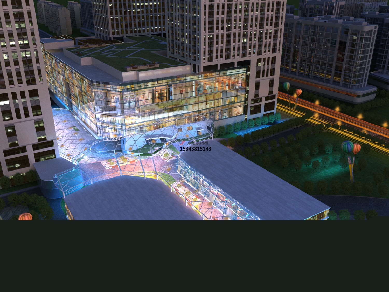 上海世博會世博軸膜結(jié)構(gòu)陽光谷。位于世博浦東園區(qū)的中心區(qū)域,南北長1045米,東西寬約110米,整體高40多米。作為到達世博主要場館的主入口,它起到了關(guān)鍵的引導(dǎo)交通和人流的作用。世博軸縱向設(shè)置了6個巨型圓錐體井狀采光結(jié)構(gòu)的“陽光谷”。世博軸外周設(shè)置了31根梭形柱,每根梭形柱至少設(shè)置了兩根拉地索。內(nèi)部還設(shè)置了19根桅桿柱,內(nèi)外柱子之間都通過高強鋼索相互連接。世博軸膜結(jié)構(gòu)采用Sheerfill I膜,共有69片單元,展開面積達68000平方米,更大的單片膜面積為1780平方米,相當于4個標準籃球場,這些在世界建筑史上都是獨樹一幟的。從美觀角度考慮,在帽環(huán)處,局部采用雙層膜,整個建筑像一朵玻璃的喇叭花從地下悄然綻放,晶瑩剔透。該工程是國內(nèi)更大的全張拉索膜結(jié)構(gòu)工程,創(chuàng)造了膜結(jié)構(gòu)施工的奇跡。
