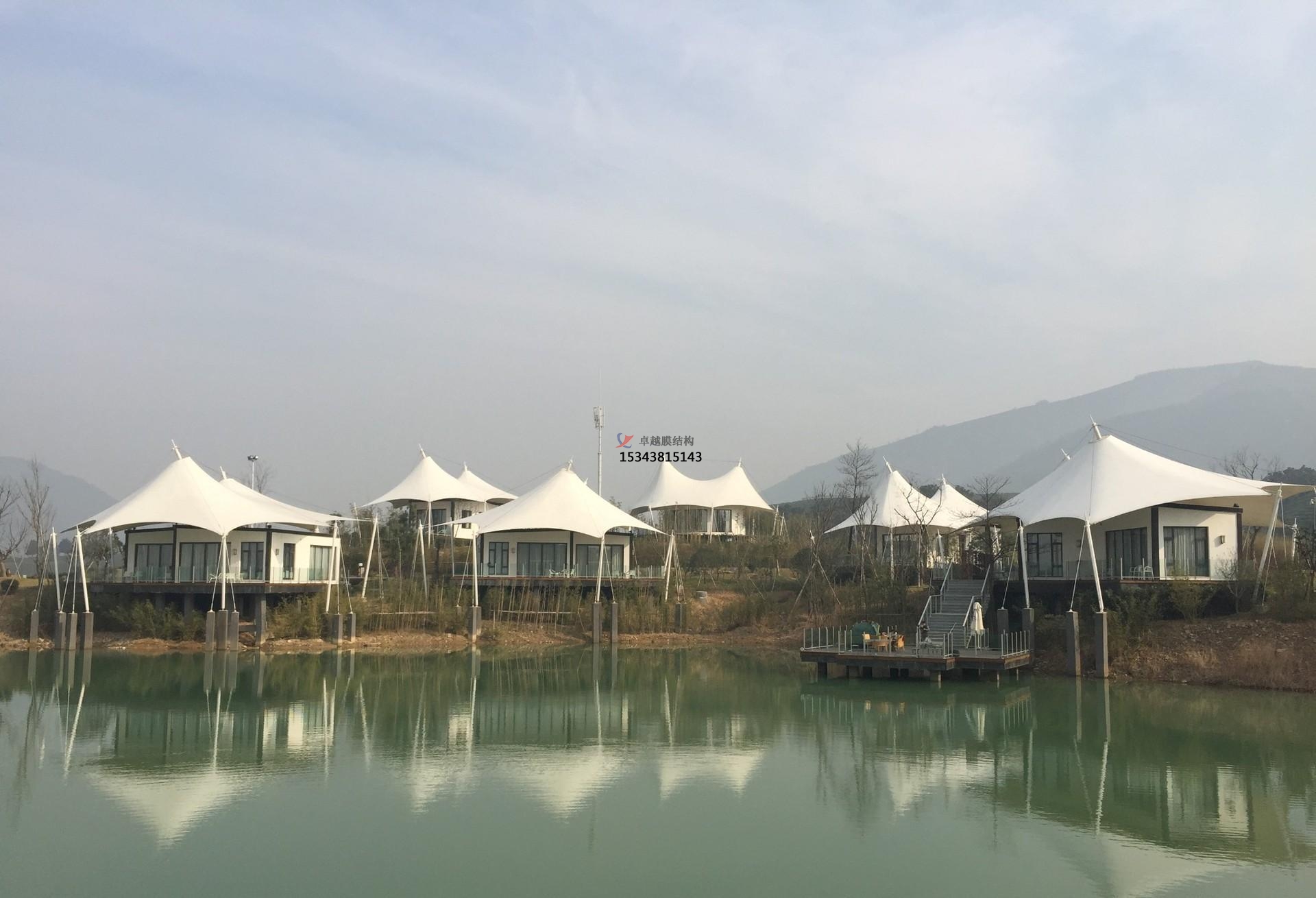 以膜材、鋼索及支柱構(gòu)成,使用鋼索與支柱在膜材中導(dǎo)入張力以達(dá)安 定的方式。除了可實(shí)踐具構(gòu)思,立異且美觀的造型外,也是*能展現(xiàn)膜結(jié) 構(gòu)精力的結(jié)構(gòu)方式。 近年來,大型跨距空間也多采用以鋼索與壓縮材構(gòu)成 鋼索網(wǎng)來支撐上部膜材的方式。因施工精度要求高,結(jié)構(gòu)功能強(qiáng),且具豐富的表現(xiàn)力,所以造價(jià)略高于骨架式商業(yè)廣場(chǎng)雨棚搭建。