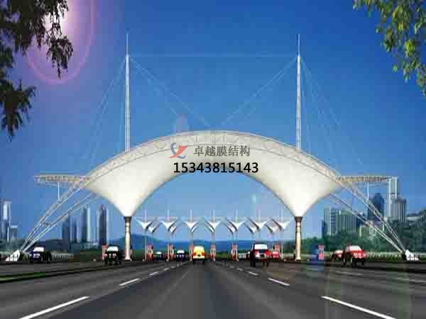 收費站膜結(jié)構(gòu)是采用高強度柔性薄膜材料與支撐體系(如鋼架、鋼索)結(jié)合形成的空間張力結(jié)構(gòu),廣泛應(yīng)用于高速公路收費站頂棚。其核心優(yōu)勢在于輕量化、造型自由及功能集成性。以下是關(guān)于收費站膜結(jié)構(gòu)的詳細介紹: