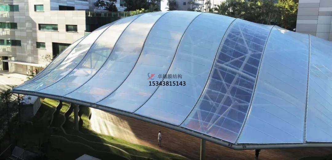 氟塑膜(ETFE)是一種新興的建筑材料,由乙烯和四氟乙烯共聚而成,是一種輕質(zhì)、耐熱的薄膜,俗稱“軟玻璃”,也是目前為止最強(qiáng)韌的氟塑料。