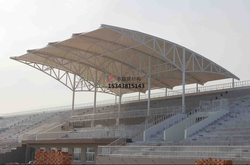 1、虞城縣春來實(shí)驗(yàn)學(xué)校膜結(jié)構(gòu)看臺雨篷/主席臺/舞臺安裝雨棚