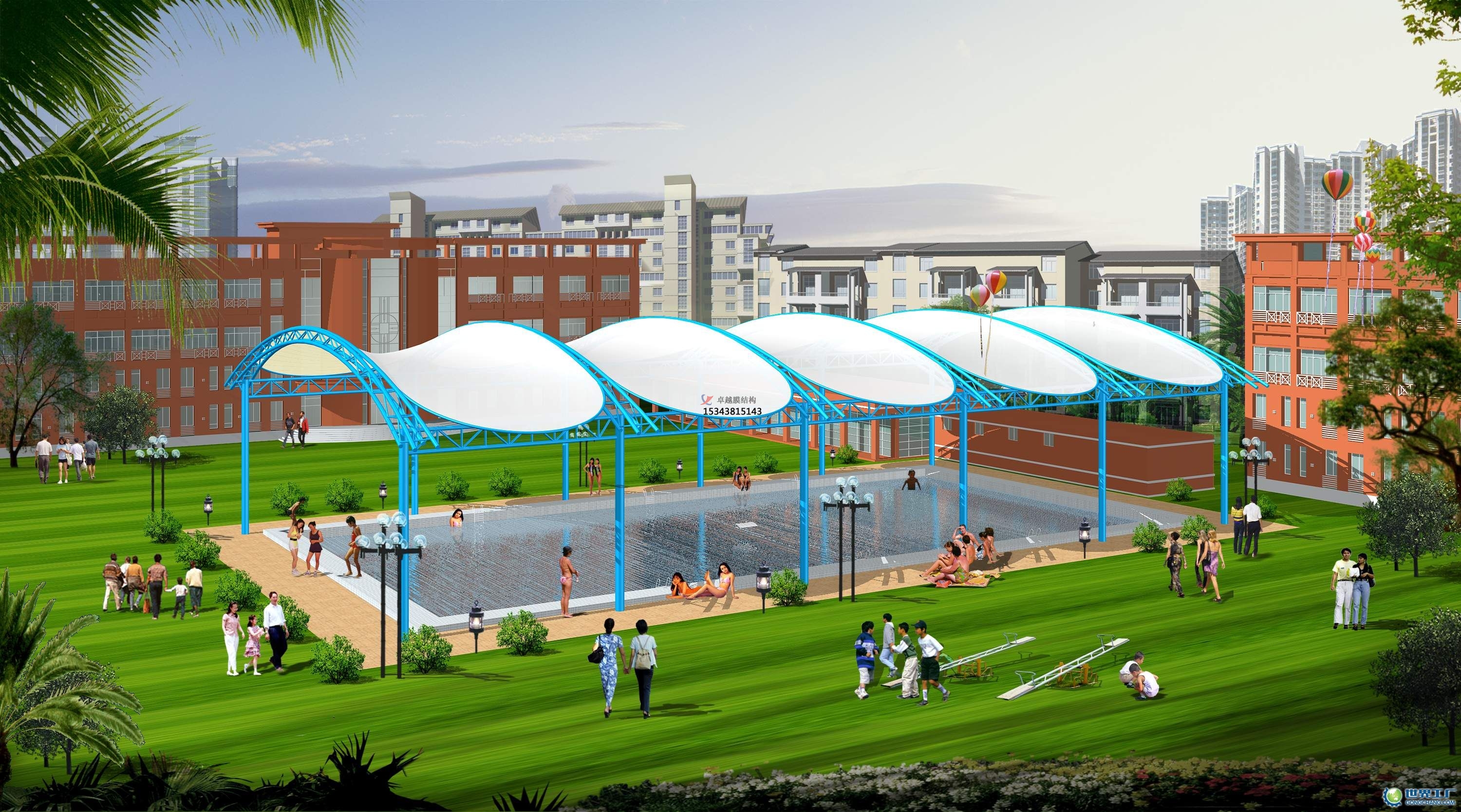 三、張拉膜結(jié)構(gòu)雨棚在設(shè)計(jì)的過(guò)程中要注意受力點(diǎn)的受力是否均衡,這樣才能保證膜布不被撕裂,也能保證雨棚的美觀性。