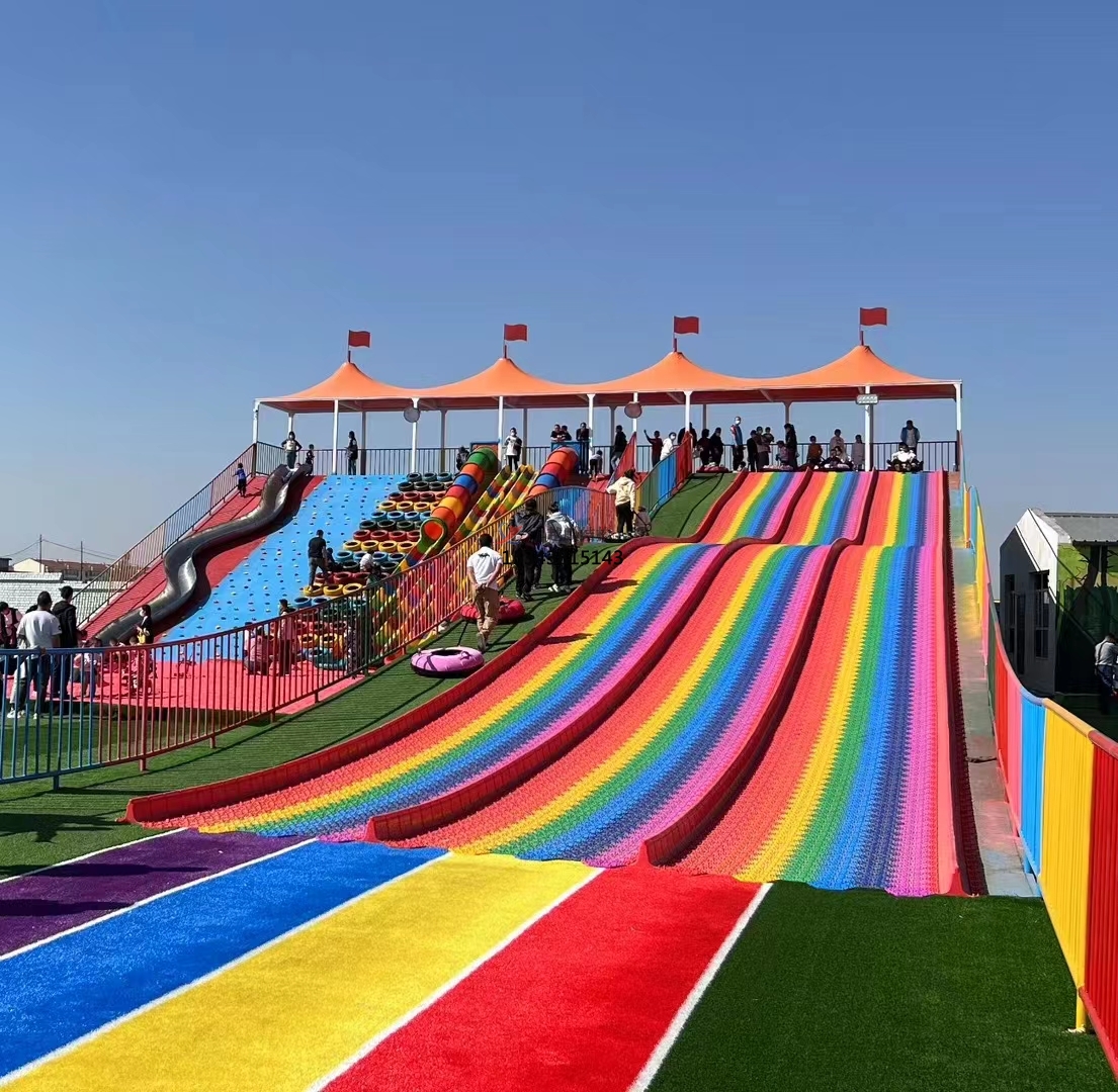 石家莊兒童樂園彩虹滑道遮陽棚的生產涉及到多個環(huán)節(jié),包括設計、材料選擇、制造和安裝等。以下是一個簡要的概述: