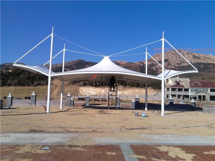 因為景觀膜結(jié)構(gòu)遮陽棚是由多種高強薄膜資料及加強構(gòu)件經(jīng)過必定方法使其內(nèi)部發(fā)生必定的預張應力以構(gòu)成某種空間形狀,作為掩蓋結(jié)構(gòu),并能接受必定的外荷載效果的一種空間結(jié)構(gòu)方式。
