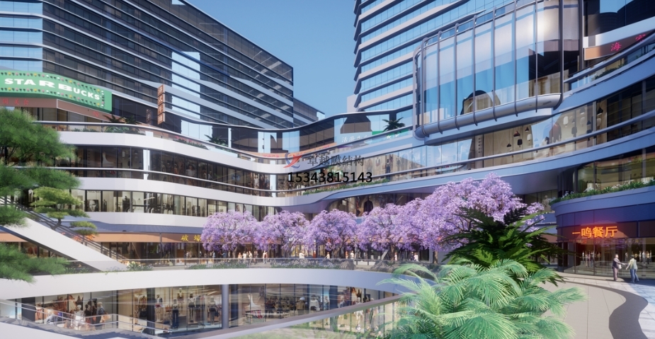 但不管怎么有格調(diào)的下沉廣場(chǎng),它也是一個(gè)半露天的公共空間,如果缺乏遮陽(yáng)避雨設(shè)施,無(wú)法提供更加舒適的休閑環(huán)境,因此,在下沉廣場(chǎng)上方增設(shè)頂蓋是非常必要的,而且一個(gè)兼具美觀、時(shí)尚、實(shí)用的頂蓋也是建筑的加分項(xiàng)。
