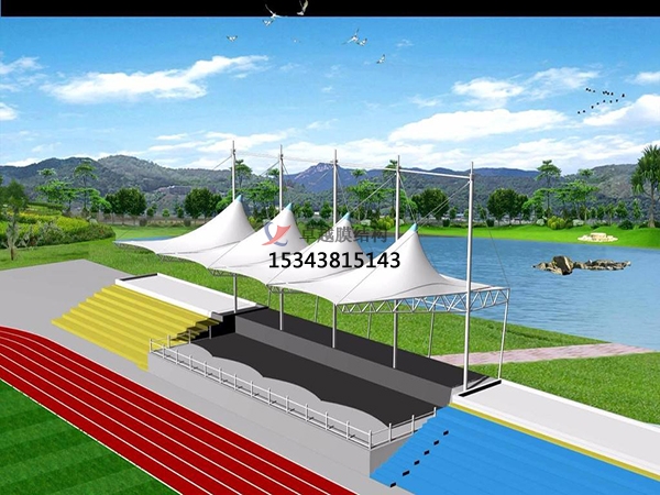 其二:膜材材質,PVC膜材與PVDF膜材作為兩種復合膜材,無論在防水、耐熱、抗腐中都具有一定的優(yōu)勢,但PVDF膜材要優(yōu)于PVC膜材。PVDF膜材是在PVC膜材上再作處理,一般PVC膜材的耐用年限是5-8年,改良后的PVDF膜材年限在10年以上,張拉性能、自潔性更好,表面灰塵會和雨水凝結成水珠,順勢流下,使膜材表面得到自然清洗。