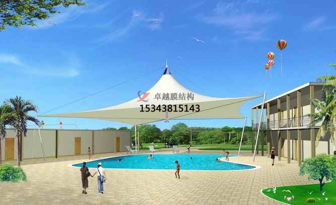 以膜材、鋼索及支柱構(gòu)成,利用鋼索與支柱在膜材中導(dǎo)入張力以達安定的形式。除了可實踐具有創(chuàng)意、創(chuàng)新且美觀的造型外也是更能展現(xiàn)膜結(jié)構(gòu)精神的構(gòu)造形式。近年來,大型跨距空間也多采用以鋼索與壓縮材料構(gòu)成鋼索網(wǎng)來支撐上部膜材的形式。其施工精度要求高,結(jié)構(gòu)性能強,且具豐富的表現(xiàn)力,所以造價略高于骨架式膜結(jié)構(gòu)。