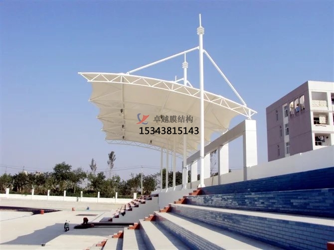 張拉膜看臺(tái)主要用于各類地方體育場(chǎng)主席臺(tái)雨棚,各類學(xué)校體育場(chǎng)看臺(tái)雨棚遮蓋,我公司是國內(nèi)較早從事大懸挑張拉膜結(jié)構(gòu)看臺(tái)設(shè)計(jì)施工的專業(yè)廠家,下面介紹一下我們?cè)诶ッ魇兄苓吙h市完工的一些張拉膜看臺(tái)設(shè)計(jì)施工案例,我公司先后在張家口市周邊承接了昆明市第八中學(xué)看臺(tái)雨棚、昆明市第三中學(xué)看臺(tái)罩棚、昆明市第十四中學(xué)張拉膜看臺(tái)遮陽棚張拉膜看臺(tái)遮陽棚等設(shè)計(jì)施工項(xiàng)目,簡介如下: